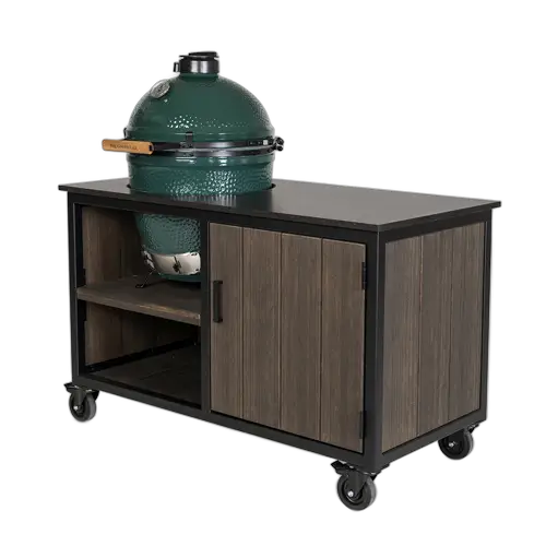 Big Green Egg Large + Fraaii Buitenkeuken Bamboo Graphite Storage is een mooie toevoeging voor elke tuin. Deze stijlvolle buitenkeuken biedt ruimte voor een kamado-barbecue en heeft een ruim werkblad. Dankzij de slimme opbergruimtes achter de kastdeur houd je al je kookgerei georganiseerd en binnen handbereik. Deze Fraaii buitenkeuken is geschikt voor kamado’s van 15 t/m 22 inch.