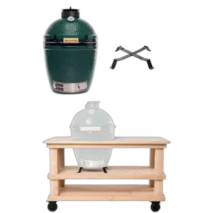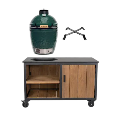 Big Green Egg Medium + Fraaii Buitenkeuken Fraké Storage is de perfecte toevoeging voor elke tuin. Het slimme ontwerp biedt plaats aan een kamado-barbecue, zodat je makkelijk buiten kunt koken. Bovendien is er handige opbergruimte achter de kastdeuren, waar je je kamado-accessoires en andere spullen netjes kunt opbergen. Deze buitenkeuken is geschikt voor kamado’s van 23 t/m 25 inch.