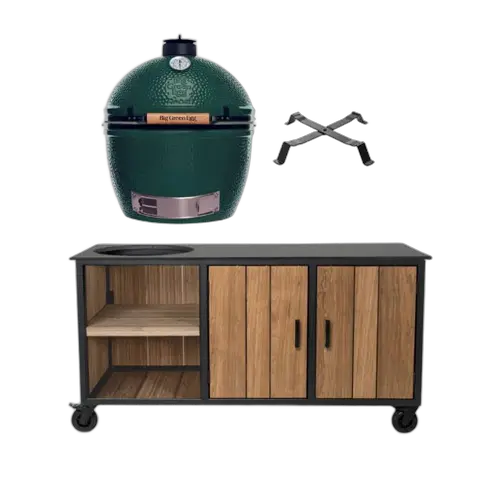 De Fraaii Buitenkeuken Fraké Inferno XL met dekton werkblad is de perfecte toevoeging voor elke tuin. Het slimme ontwerp biedt plaats aan een kamado-barbecue, zodat je makkelijk buiten kunt koken. Bovendien is er handige opbergruimte achter de kastdeuren, waar je je kamado-accessoires en andere spullen netjes kunt opbergen. Deze buitenkeuken is geschikt voor kamado’s van 23 t/m 25 inch.