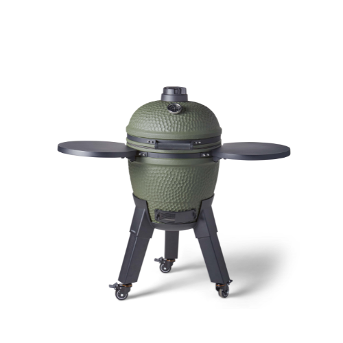 De moddern kamado barbecue biedt een uitstekende balans tussen stijl en functionaliteit. Het gebruik van keramiek van hoge kwaliteit zorgt voor efficiënt warmtebehoud en gelijkmatige warmteverdeling, wat elke keer resulteert in perfect gegrilde gerechten. Het opvallende ontwerp met een matgroene afwerking maakt dit model een echte blikvanger in elke tuin. De stevige zwarte aluminium voet zorgt voor een stabiele plaatsing van de BBQ. Daarnaast is deze barbecue uitgerust met een hoogwaardige thermometer die bestand is tegen condensatie. Met de boven- en onderventilatie is het eenvoudig om de temperatuur binnenin de barbecue nauwkeurig te regelen.