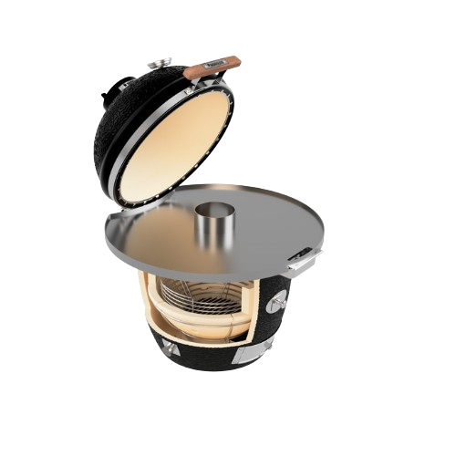 De Monolith LeCHEF Fireplate verandert je kamado in een veelzijdige plancha voor creatieve kooktechnieken. Deze massieve stalen bakplaat wordt bovenop de LeCHEF geplaatst en biedt een royaal kookoppervlak waarmee je meerdere gerechten tegelijk kunt bereiden.