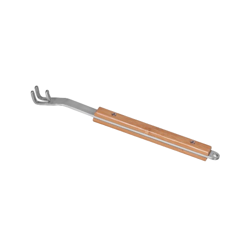 Dankzij de stevige roestvrijstalen haak blijft de steen stevig vastzitten, terwijl de lange bamboe handgreep voldoende afstand biedt tot de hittebron. De ergonomische grip ligt comfortabel in de hand en biedt optimale controle bij het verwijderen of terugplaatsen van de steen. Bovendien heeft de hefboom een handige lus om hem gemakkelijk op te hangen en netjes op te bergen.