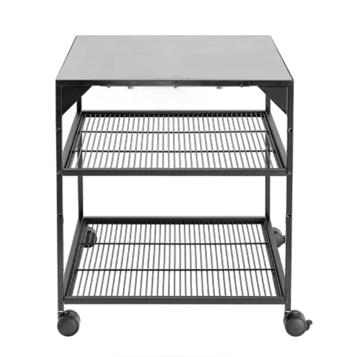 De Witt Pizza Table is het ideale werkstation voor elke pizzaliefhebber. Deze stevige, zwart gepoedercoate stalen tafel is speciaal ontworpen om je pizzaoven een vaste plek te geven én om al je accessoires netjes en binnen handbereik te houden. Dankzij de roestvrijstalen bovenkant heb je een hygiënisch en hittebestendig werkblad waarop je veilig kunt werken met deeg, toppings en hete tools.